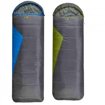 Warm hooded extra-large sleeping bag with twin insulation layers for nights when the mercury dips under zero. Zip two sleeping bags together to make a double Twin layers of Non-allergenic Exotherm X Fill for great insulating properties. Velcro closure at top of the sleeping bag keeps the bag around you allowing you to control the temperature by adjusting the zip.