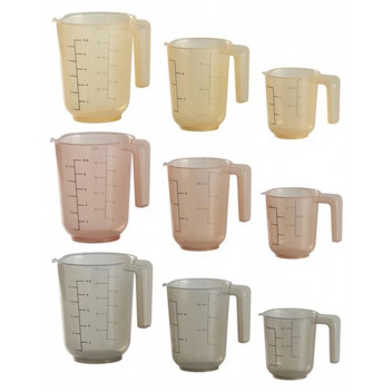 This jug set is a practical kitchen tool for precise measurements. Made from durable and food grade plastic. Has clear and easy to read markings, allowing for accurate liquid measurement. The handles ensure a comfortable grip.