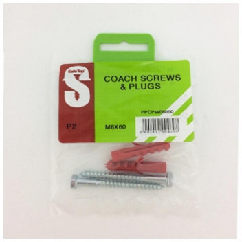SAFETOP SCREW COACH WALL PLUG 6X60MM 2PP
