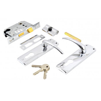 Standard lockset with cylinder. For internal or secondary door or for the main entrance door. SABS approved.