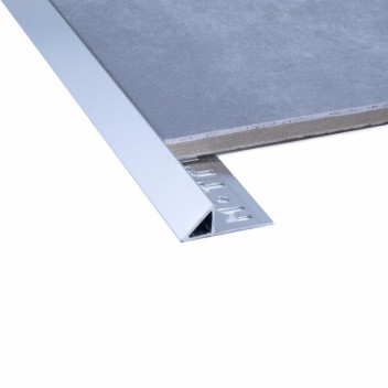 45 Degree angle. Used to protect and decorate the edges of tiled floor and wall surfaces. It can be used with other floor materials and applications such as wood and carpet. Tile thickness 8 to 9mm.